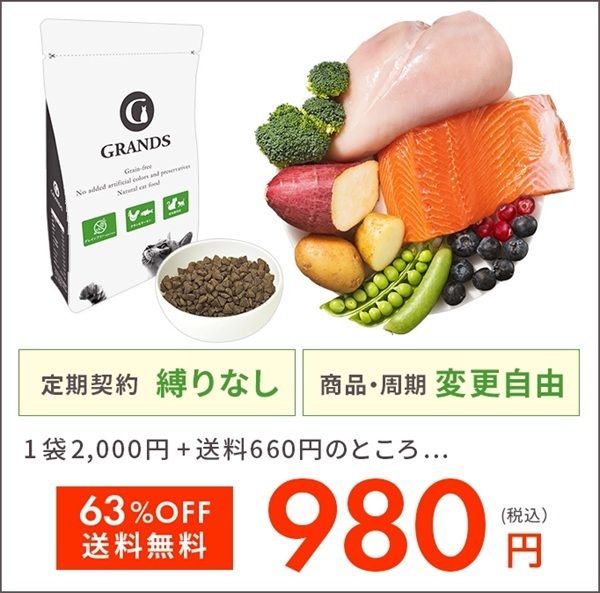 こんな風に気になっているなら、まずはグランツ(GRANDS)のキャットフードやドッグフードのお試しはいかがでしょう?