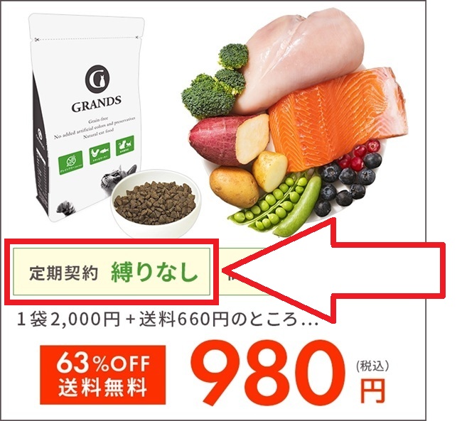 グランツ(GRANDS)のキャットフードやドッグフードは、定期コースとしては珍しく「いつでも解約OK」なので、お試しだけで止めることもできるのです。