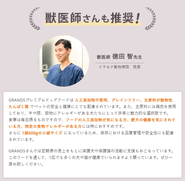 その1:健康で美味しいを実現した総合栄養食【グランツ(GRANDS)キャットフード・ドッグフード】