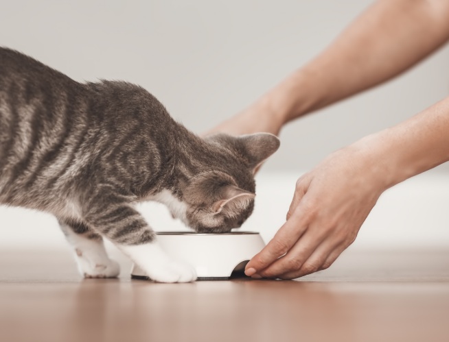 ペットショップで食べてたごはんと同じものをあげてたんだけど、食が細いからプレミアムキャットフードに変えたらまーーー食べる食べる
